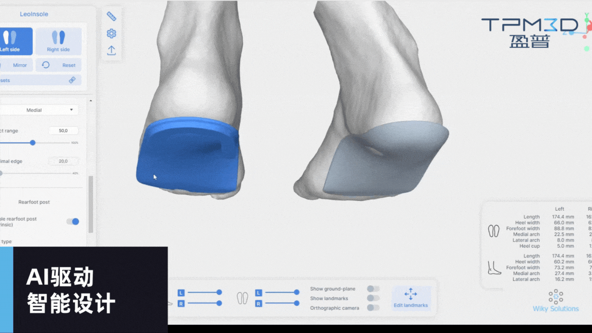依托數十年積累的龐大病例數據與臨床案例數據庫,和患者獨有的掃描數據,設計軟件可生成定制化、精準、符合生物力學原理的矯形器、鞋墊等模型,實現從“人工經驗設計”到“數據驅動標準化設計”的跨越,不僅減少對資深矯形師的依賴,更能保證產品性能的穩定性與適配精準度。